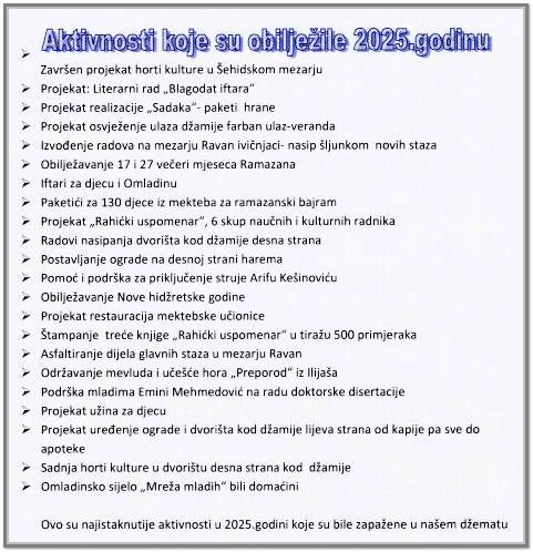 Približava se kraj kalendarske 2025. godine. Imajući u vidu da se ne može doći do svakog člana džemata pojedinačno, ovom prilikom želimo, kroz obavještenje i…